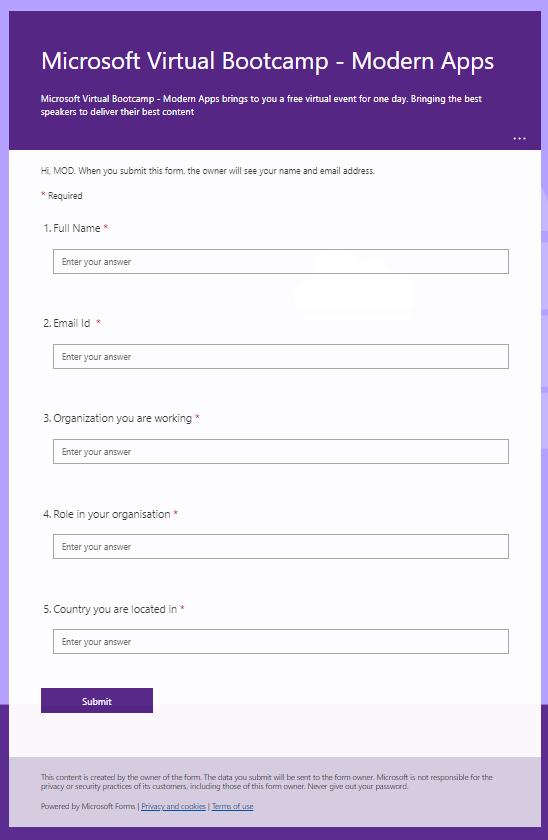 Before jumping into the details of the Power Automate flow, create a Microsoft Form for your event as per your requirement and needs. As shown below in Fig 1.2, a sample Form created for reference