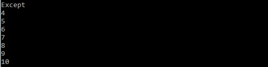 - Console.WriteLine(System.Environment.NewLine + "Except");