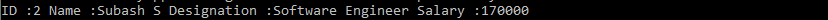 - ID = 2, Name = "Subash S", Designation = "Software Engineer", Salary = 170000
