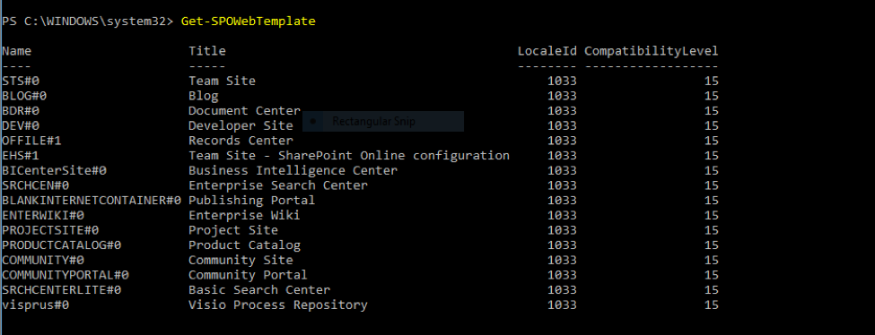Syntax: Get-SPOWebTemplate