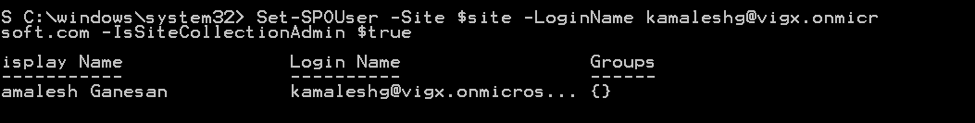 [email protected] -IsSiteCollectionAdmin $true