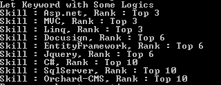 -     Console.WriteLine("Skill : " + item.skill + ", Rank : " + item.rank);