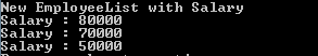 - Console.WriteLine("New EmployeeList with Salary");
