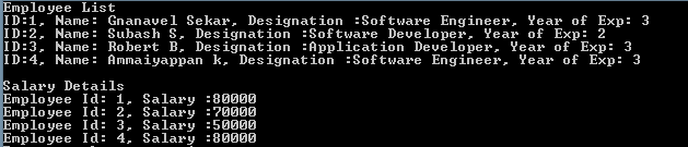 -             Id = 2, Name = "Subash S", Designation = "Software Developer", YOE = 2