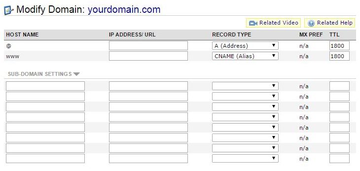Clicking on this area (or its equivalent within your domain provider) should present you with an area that looks like the following,