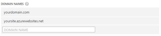 After updating your hosting plan, you will want to visit the Configure tab within the Azure portal for your site. You’ll see quite a few settings and configurations related to your site, but continue going until you see Domain Names,