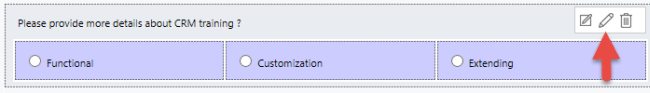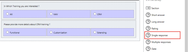 Now, click on Preview command button on the survey form. We should be able to see our question while CRM is selected.
