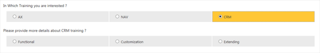 And, when any other training is selected, the CRM training question will be hidden like below.
