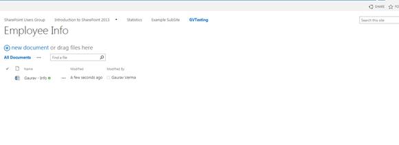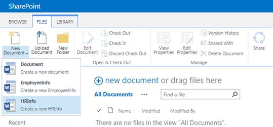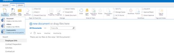 Save the documents using HRInfo and EmployeeInfo content type. Go to library and click EmployeeInfo.