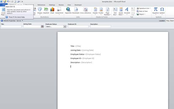 Quite often, there is a situation when a user wants to save the documents with metadata in SharePoint library. To accomplish this, we can use document template, customize it, and by using Quick parts in Microsoft Office, we can save the metadata in the library and in Microsoft Office documents.