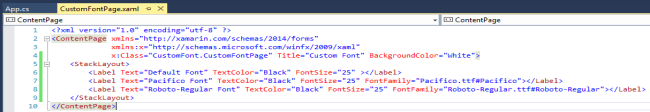 - <Label Text="Roboto-Regular Font" TextColor="Black" FontSize="25" FontFamily="Roboto-Regular.ttf#Roboto-Regular"></Label>