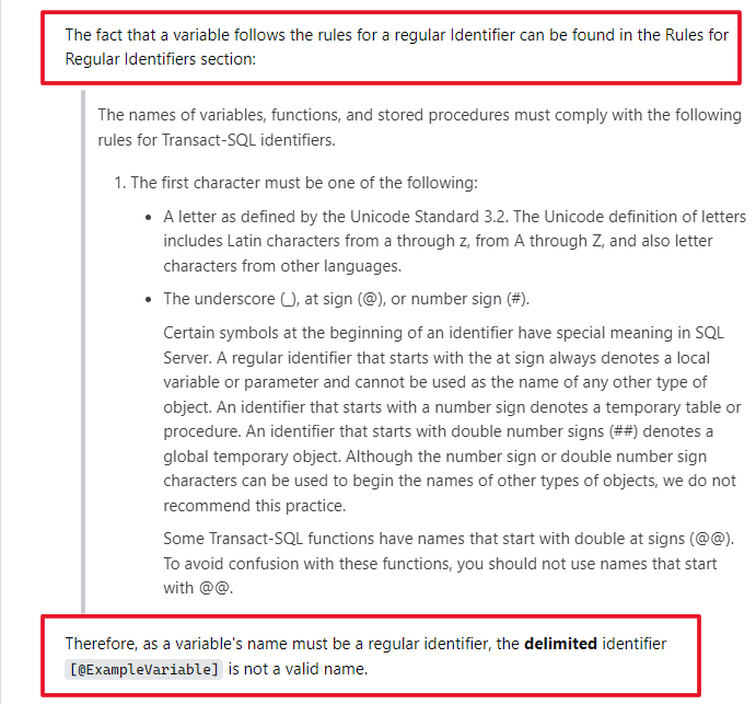 - The database Identifier cannot be parameterized.
