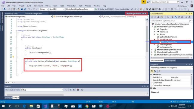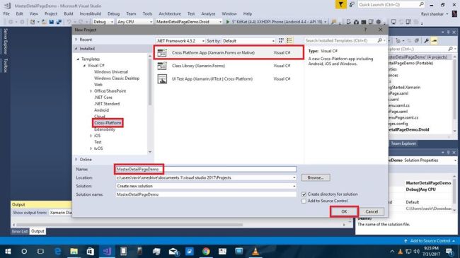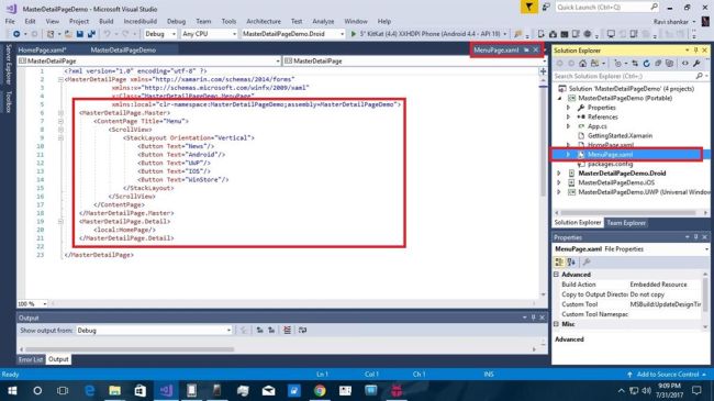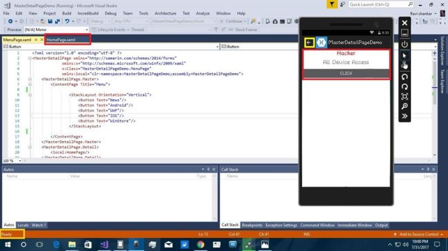 Xamarin is a platform that allows us to create multi-platform mobile applications like Windows phone, Apple iOS, and Android through a single integrated development environment (IDE). We will discuss how to create MasterDetail Page applications from VS2017. There are many plugins available for Xamarin Cross platform including Stack Layout, Label,ScrollView and buttons.