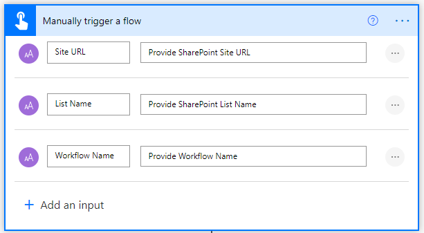Define the Input Parameters like Site URL & List Name which will need to be replaced on the Flow created from Base Flow.