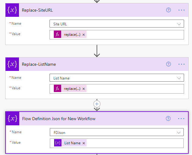 - List Name - replace(variables('Site URL'),outputs('Get_Base_Flow')?['body/properties/definition/triggers/When_an_item_is_created_or_modified/inputs/parameters/table'],triggerBody()['text_1'])