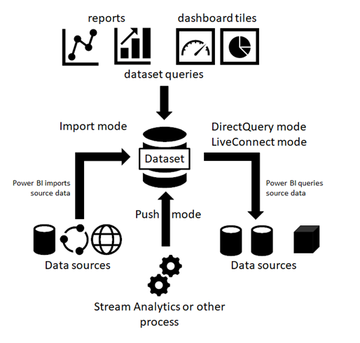 In order to update any visualizations in your reports or dashboards that rely on the updated dataset, Power BI must first query the underlying data sources, perhaps load the source data into a dataset, and then refresh the data.