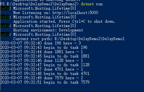 - Console.WriteLine($"{DateTime.Now.ToString("yyyy-MM-dd HH:mm:ss")} done {taskId} here - {sec}");