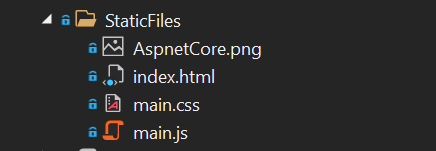We can place the static files anywhere inside the project solution. In order to place those, we just need to create a new project for this demo. Create a sample Web API project with .Net Core 3.1 or .Net Core 5.0 Template after creating the project create a folder named StaticFiles where we will add our static files. Create an HTML file, Javascript file and CSS File inside the StaticFiles and folder looks like below.