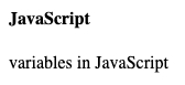 <h4>Variables in JavaScript</h4>