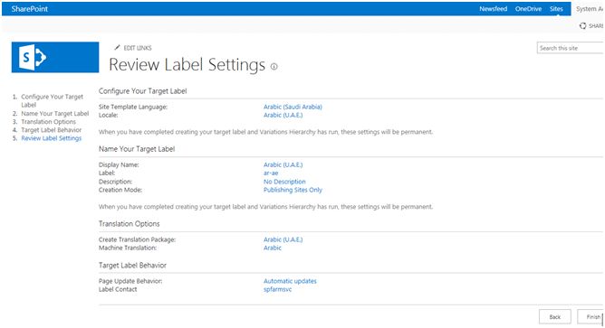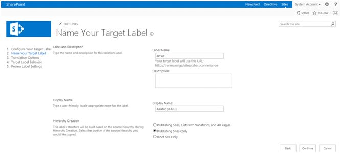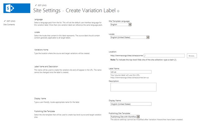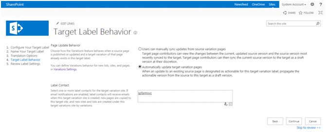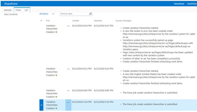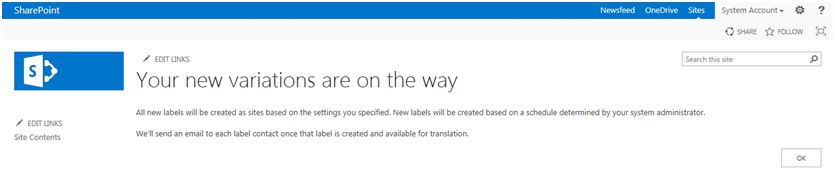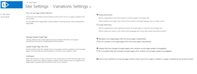Creates a complete variations hierarchy by creating all variation sites, lists and the pages from the source variation site, based on the variation labels. By default, this timer job runs hourly.
