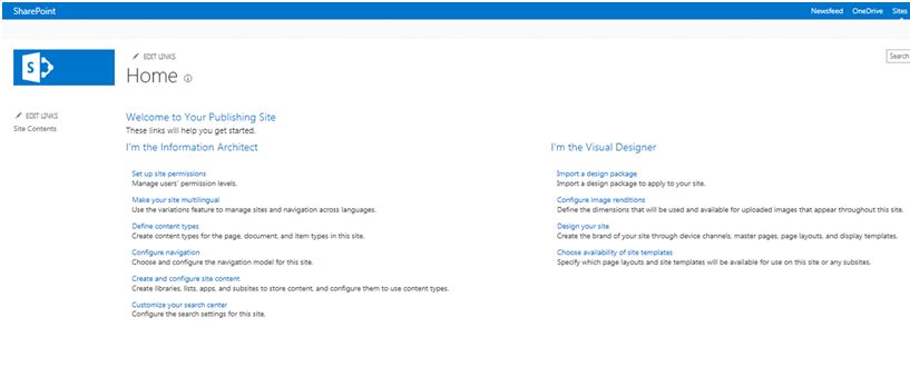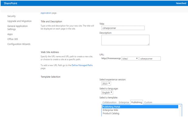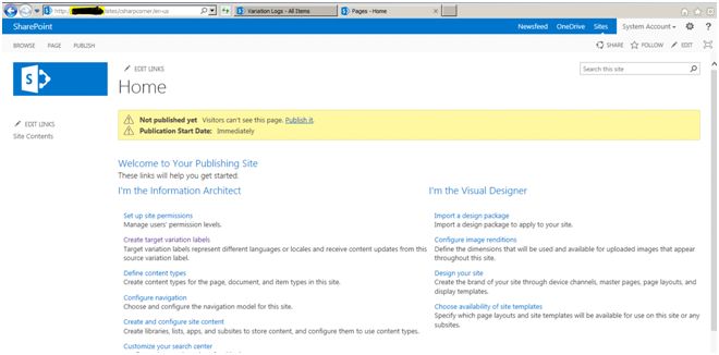 - Select the hierarchy creation "Publishing sites list with variations and pages".