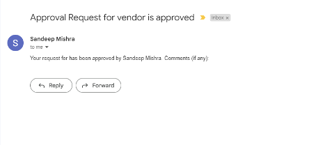 Once the manager approves or disapproves, the vendor will get a notification by email.