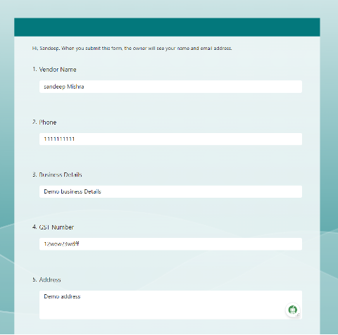 Step 2. Vendor will fill the form using given link. Vendor will fill those columns -