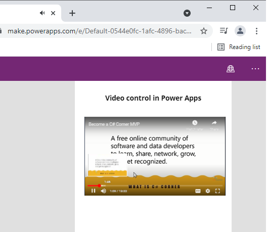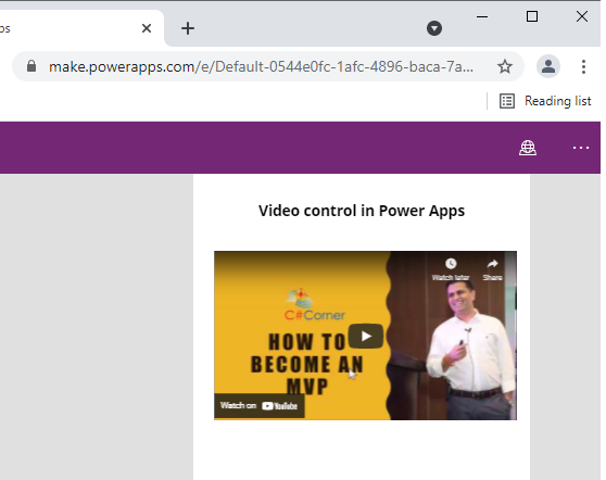 Now we can see the preview of your App in Power Apps Studio, and the output of the PAVideo is,