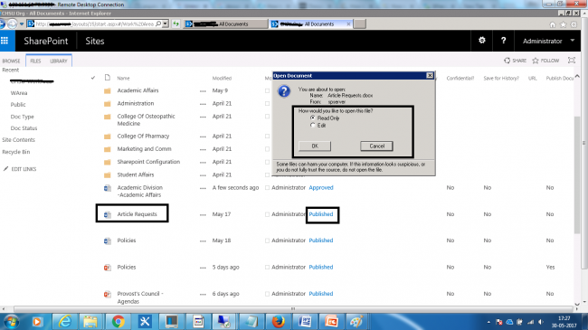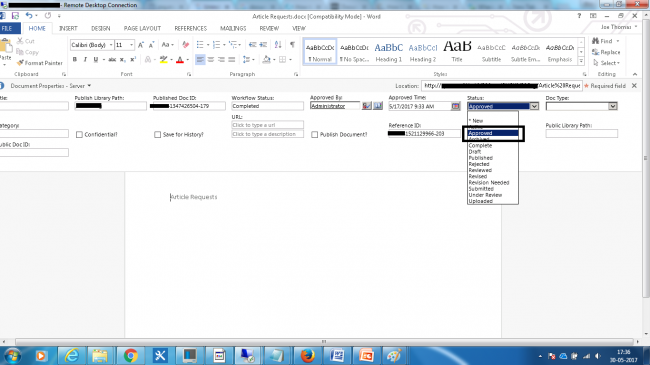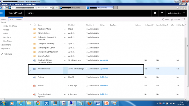 Then, I just want to open the “Article Requests” Document and also, we can see the “Status” Column of this document is “Published”.
