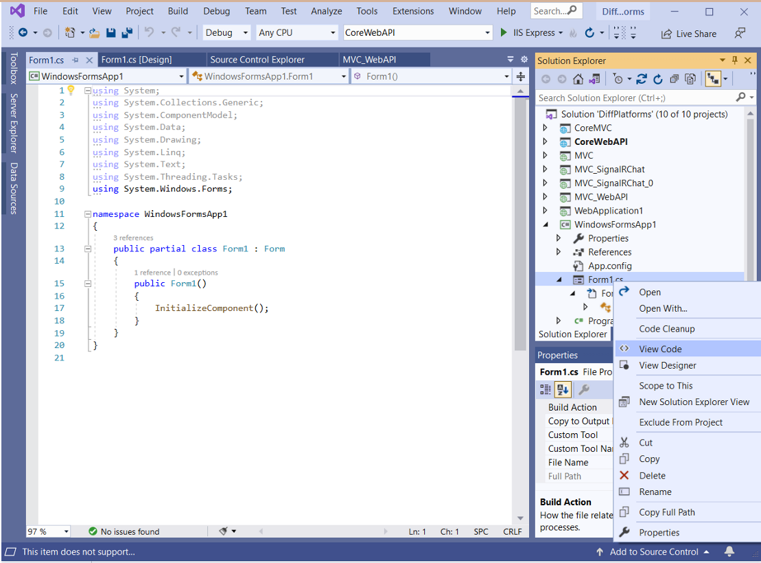 In Visual Studio solution (we use the current version of 2019 16.11.0), some files are readable, such as C# code, some are not, such as .NetFramework project file. This article will introduce a way to view all files in text or with a suitable editor.