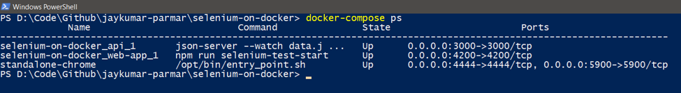 Once we have this setup, we can give the below command and we should be able to see Angular app and JSON-Server app up and running inside containers