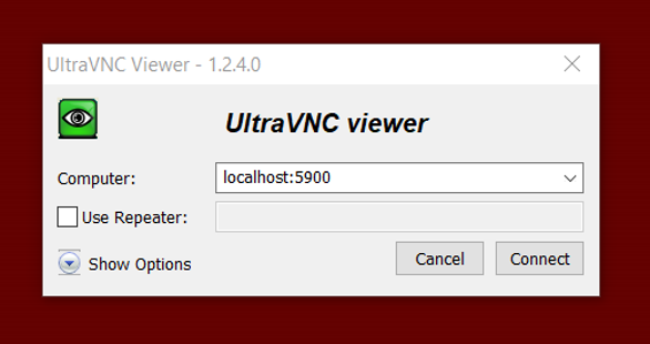 - Launch UltraVNC viewer