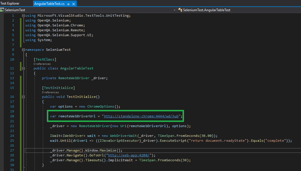 Now, let’s look at the .NET Core MSTest project in which I have my Selenium test written.