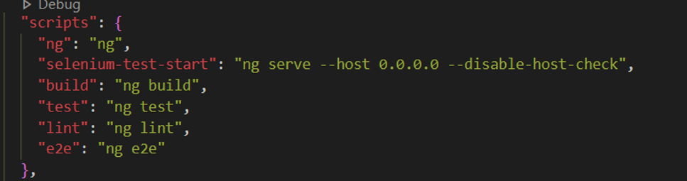I also added a script, “selenium-test-start” in my package.json as below.