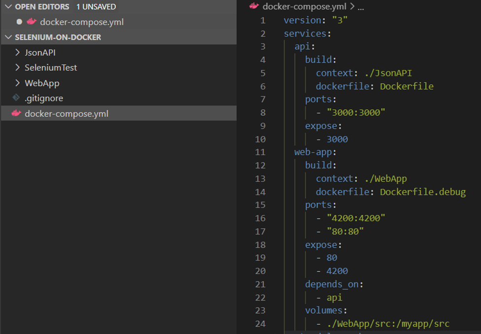 The first step is to add service in a docker-compose file to run Selenium Standalone- Chrome image.
