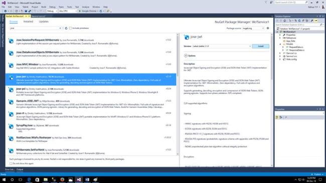 Now, let’s create function for JWT Token as follows in Service.svc.cs. For JWT encoder, we need to download and add "Jose-jwt" reference, as shown below.