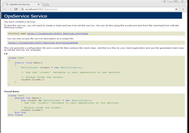 Here you will get a service link as in figure above: localhost:8080/Service.svc
