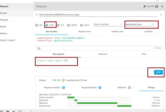 Now, open the Advanced REST client from Chrome, give inputs to that, and send . You will get notification 200; i.e., OK. If you get an error, fix those errors explained in the message and try sending again.
