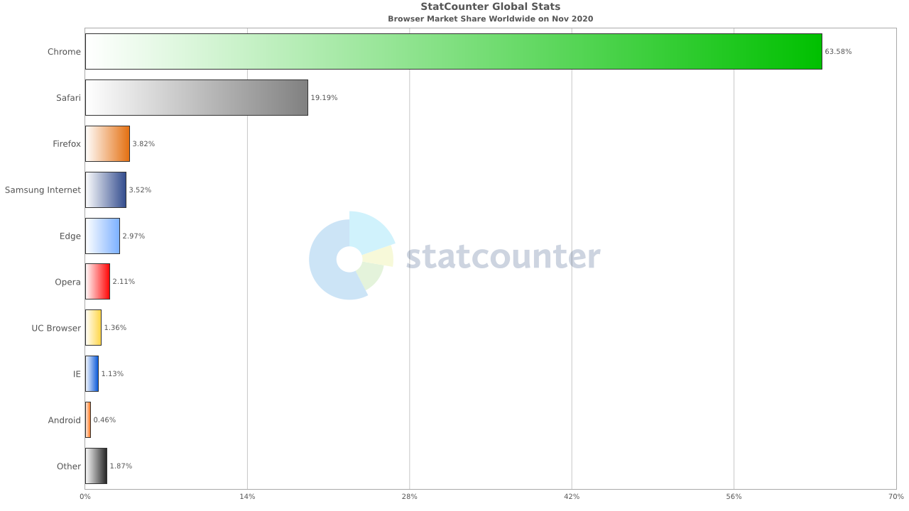 All statistics show Google Chrome occupies more than 60% share, while other most of them are less than 4%, except Safari has two digits.