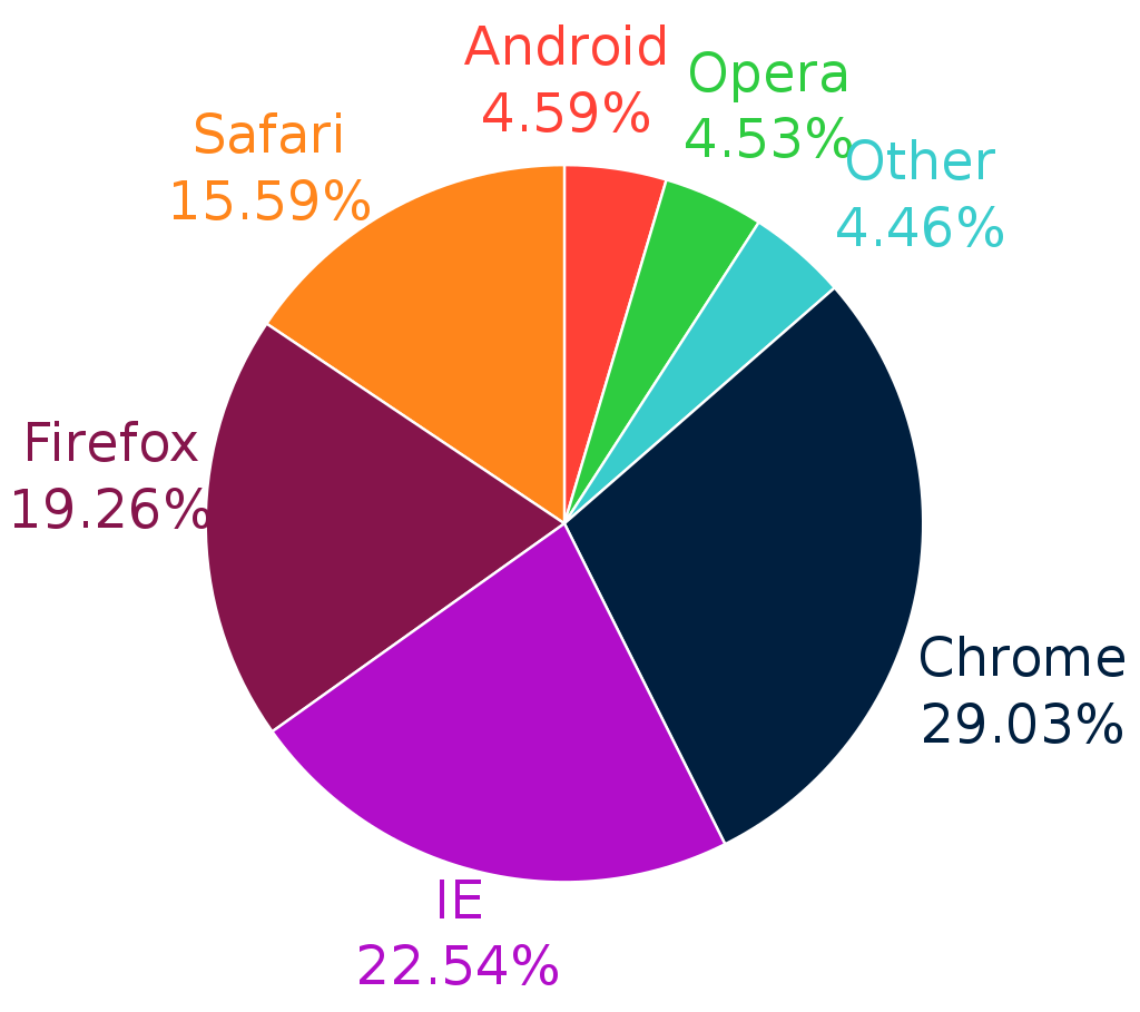 This is the distributions of Web Browsers in space (same time) or in time. These statistics suggests us to use Google Chrome as browser as a trends.