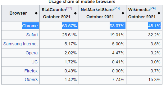 - A - 2 -3: Usage share of Mobil browsers in October 2021 (Table)