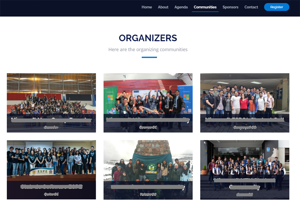 In the next article, we can learn how to use the same data stored in the database with SQL Server, but this time to represent it in a web portal where users or attendees can learn about sessions, speakers, and everything else. In the case of the list of organizers, in this second portal we could have something like this,