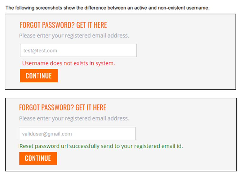 - Username Iteration Using Forgot Password Functionality