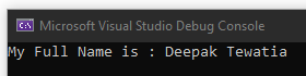 Now, in the Main method of the Program class, an instance of the Person class is created and assigned to the variable person. The FirstName and LastName properties are then set to “Deepak” and “Tewatia” respectively.