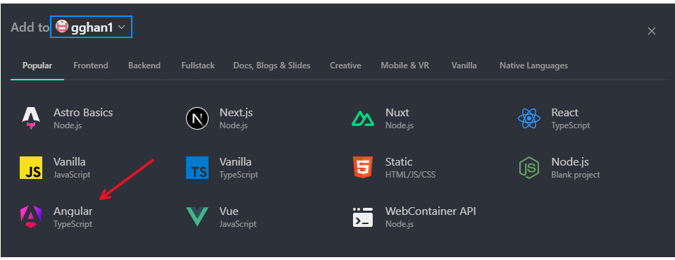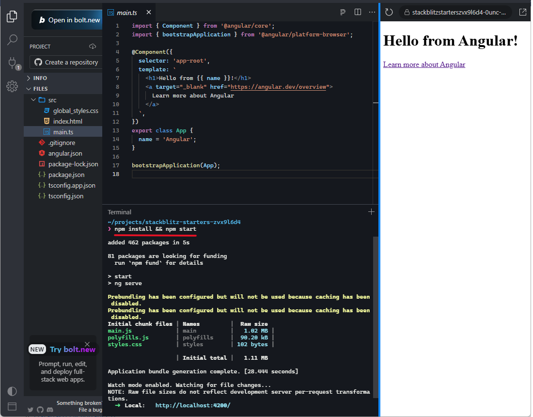 Go to StackBlitz | Instant Dev Environments, in fact, https://stackblitz.com/