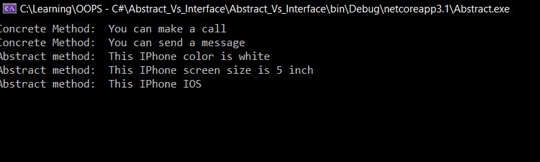 Console.WriteLine("Abstract method: This IPhone IOS");