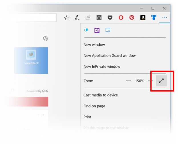 Full-screen mode (F11) in Microsoft Edge