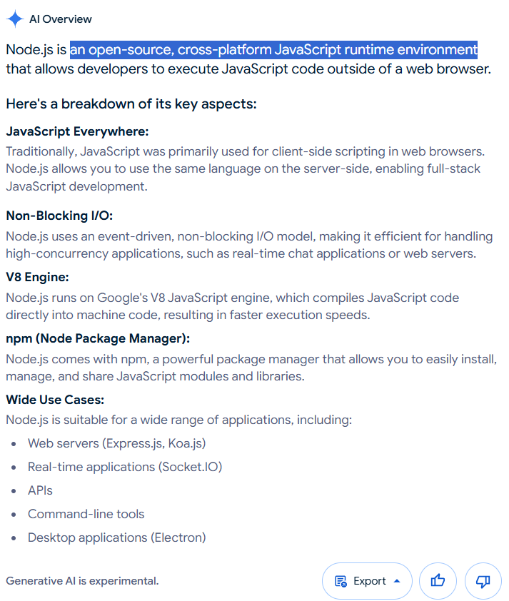 Note: you'd better to run the google search in Chrome, otherwise, for example in Microsoft Edge, you might not get the AI result, even you run google search there. In case you cannot get the AI result, I copy it below: