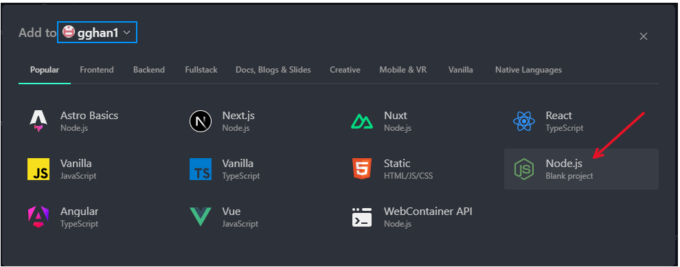 Go to StackBlitz | Instant Dev Environments, in fact, https://stackblitz.com/