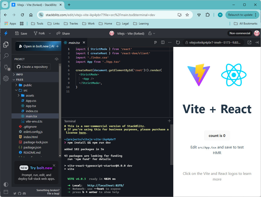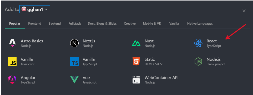 Go to StackBlitz | Instant Dev Environments, in fact, https://stackblitz.com/